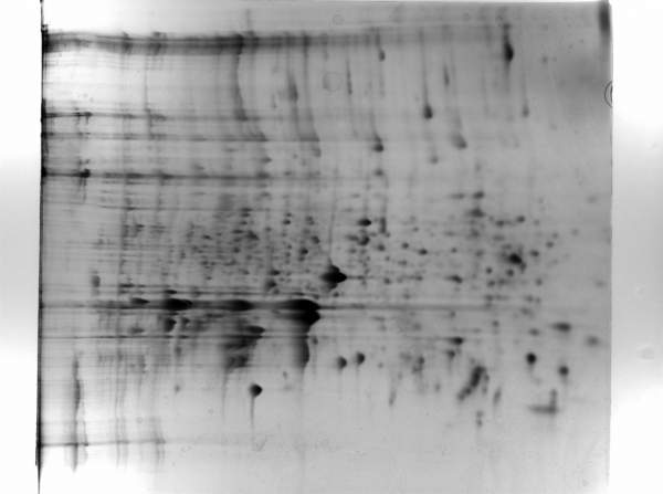 也就是说竖纹比较明显,是样品变性问题或者是第二向电泳问题。我觉得一般是样品变性问题。也有少量横纹,是聚焦的问题。可能是样品中含有一些盐。