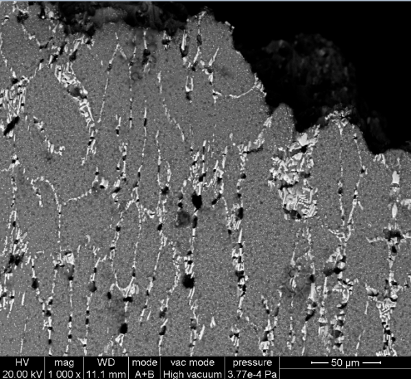 大家好 我做的这个铝合金300℃高温拉伸 塑性非常好 达到20%多 但是观察拉伸断口纵向发现出现很多孔洞 其他300℃塑性没这么好的试样没出现这种现象。所以想请教下 这些孔洞形成的机制、原因是什么呢?其对性能有何影响呢?谢谢了