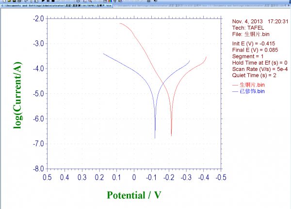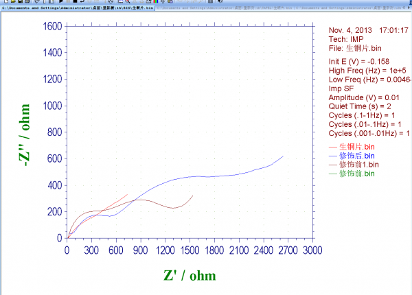 鄙人用的辰华的CHI660E工作站,主要测试金属超疏水改性后的腐蚀性,测完EIS后紧接着测试的TAFEL,但是tafel结果完全和eis不匹配,根据辰华自带的tafel拟合软件得到的Icorr在超疏水改性前后几乎都是在1.5乘以10的-5次方附近,,重复数据N万次结果都差不多,根本达不到预期的改性后Icorr降低很多的目的,是因为辰华的机器本身的原因吗?求助! EIS TAFEL |