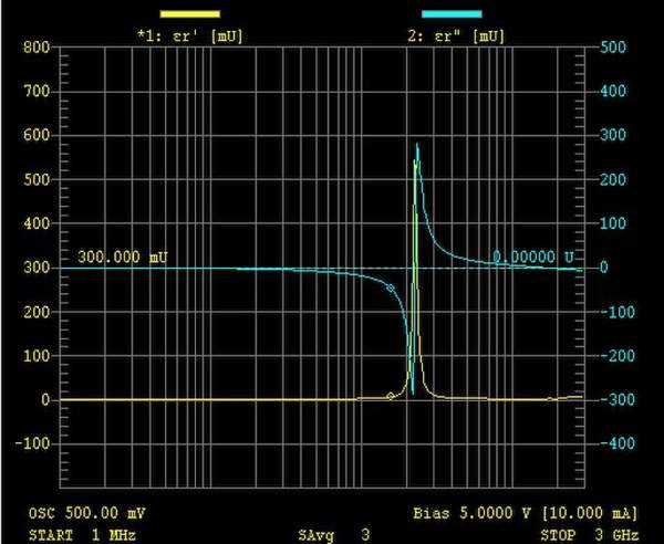 在介电测试中发现如下突变,有人说这种突变是由于共振引起的,但是我看了下频率和共振的发生频率对不上。求高人讨论讨论。