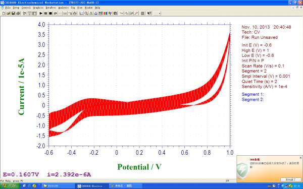 【求助】用CHI660B测循环伏安曲线,总是一条直线