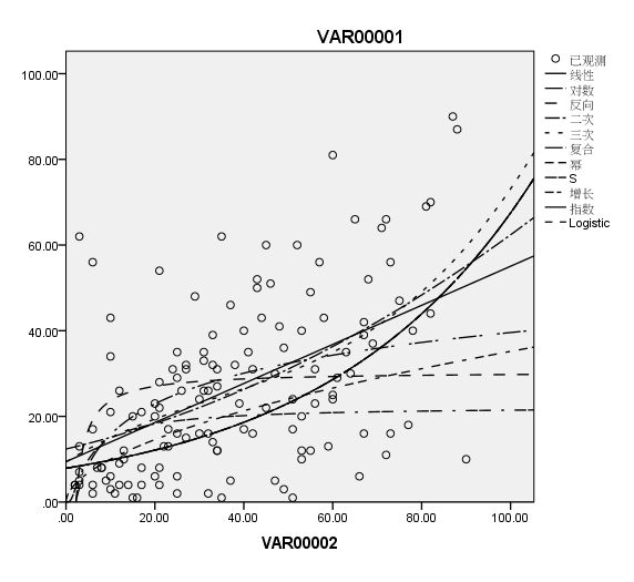 现对这两组数据进行曲线估计,得到以下结果,但是结果不是很明白,求解释。我要进行回归分析该如何进行?求大家帮忙~