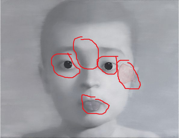 The child is not really a child. His face is a metaphor of something else.