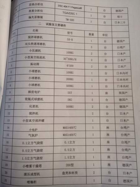陶瓷原料及产品检测和实验室硬件配备已有2人参与