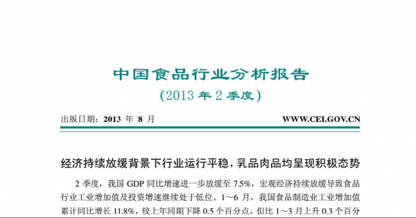 中国食品行业分析报告 09年-13年 (13年的只有前两个季度)