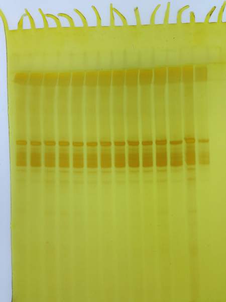 求助!!!DGGE胶染色后,肉眼看到很多条带,相片及凝胶成像拍不出来。怎么回事?