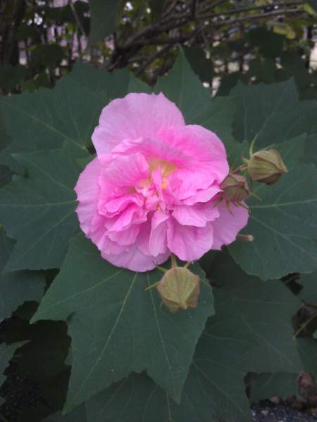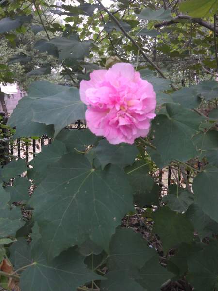 锦葵科的木芙蓉Hibiscus mutabilis,这个是重瓣的栽培品种