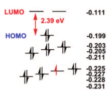如图是文献中一个计算结果,主要说明了单电子(红色)的能量低于HOMO。