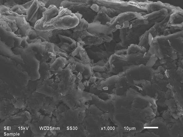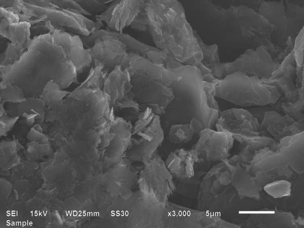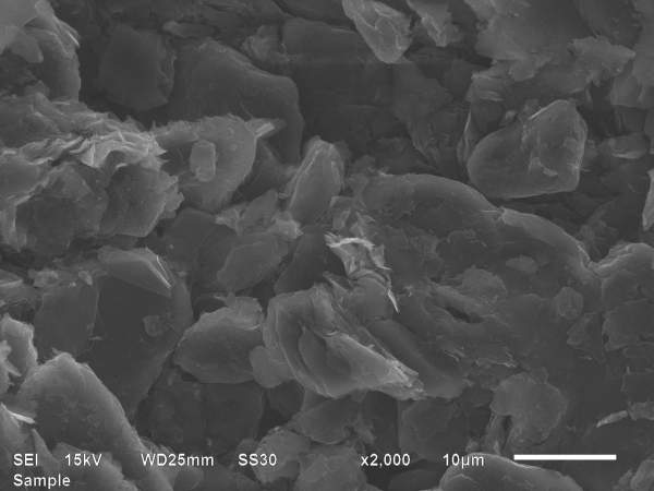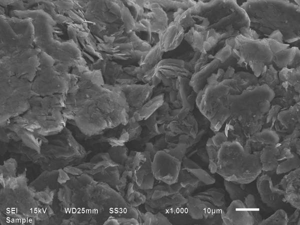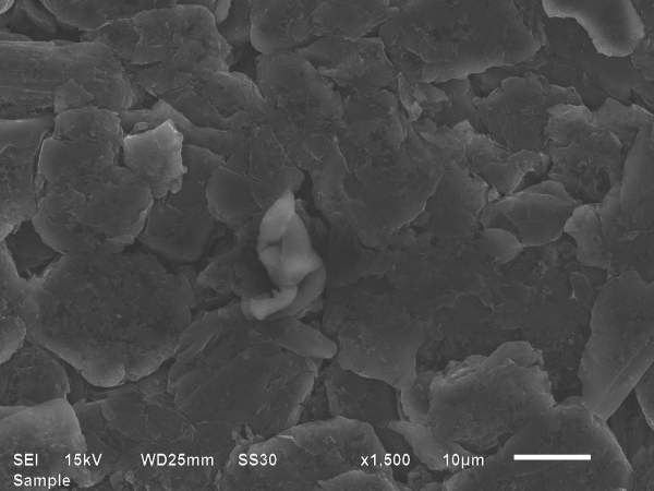 如图,负极极片辊压后电镜图