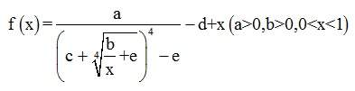函数中变量太多,你应该先把 a b c d e 确定下来(比如都取值 1)再画,直接用Plot[f,{x,0,1}],即可;
