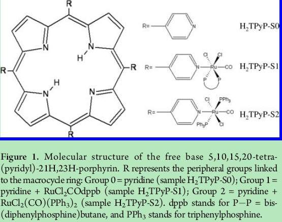 如图所示 大环的卟啉分子连接了不同的R基团 请问在后两个分子中 Ru是怎么跟周围的元素成键的? 虚线和黑三角分别代表什么意思?是配位键吗。