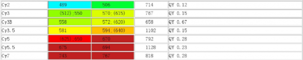 常用的荧光染料中看到Cy5的激发波长是650nm,但是有一个括号里写着625nm,不知道具体是什么意思。。。求赐教。。。