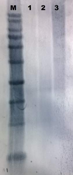 植物基因组经过A/B/A+B 两种酶进行酶切,做southern杂交,用的罗氏的地高辛试剂盒,好像是背景很高,掩盖了目的条带,请大家帮忙分析一下啊?可能是什么问题,不胜感激!(M:marker 1:A酶切 2:B酶切 3:A+B酶切)![]() 无标题.jpg |