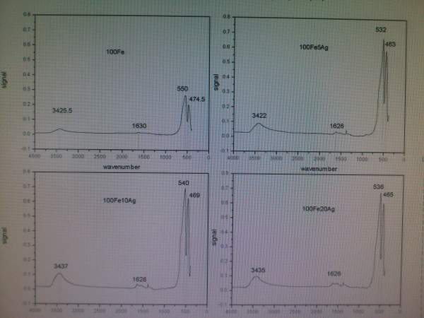 3430cm附近为何有O-H振动峰?(400度焙烧10h)强度为何增加?还有550、470处Fe-O键为何强度增加(能否深入解释下,可以罗列出可能的原因,而非简单说该处吸收增强),跪求解释!!!