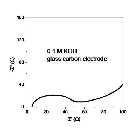 做ORR时,用的材料是石墨烯负载的金属氧化物,把材料涂到玻璃碳电极上了,如图。 这个半圆是所谓那个“接触和电荷转移阻抗”吗,和材料有关?还是0.1 M KOH的阻抗?KOH的阻抗从哪里看的? 谢谢大家! 图片1.jpg |
