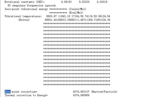 频率这块儿不正常的显示,但是最后结果是Normal termination ,这是什么原因?主要是这种情况下后面单点能什么的值就不正常了,这个问题怎么解决呢?谢谢