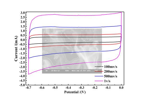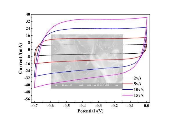 各位虫友帮忙看看这个CV,材料是氮掺杂的碳材料,比表面积120m/g,电解液是6MKOH,三电极测试,用的HgO参比电极,铂丝为对电极,不同扫速的CV如下图所示,根据电容=积分面积/(2*质量*扫速*电压区间),活性物质质量2mg,计算出来不到1F/g,而文献报道为220F/g,刚接触电化学,不知道原因出在哪?各位虫友帮帮忙。 100mv-1v.jpg 2-15v.jpg |