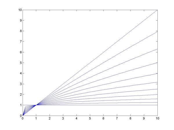 a是参数,是一维数组,x是变量,也是一维数组,都包含10个元素。我想画y=x’^a,就是考察幂a的变化对函数的影响。谢谢