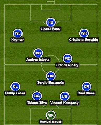 巴西世界杯最强11人阵:梅西C罗奢华联手 英超仅1人