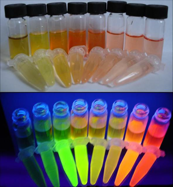 还想请问量子点发射峰位多大在紫外灯下才能较明显的看出荧光?