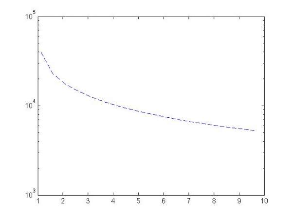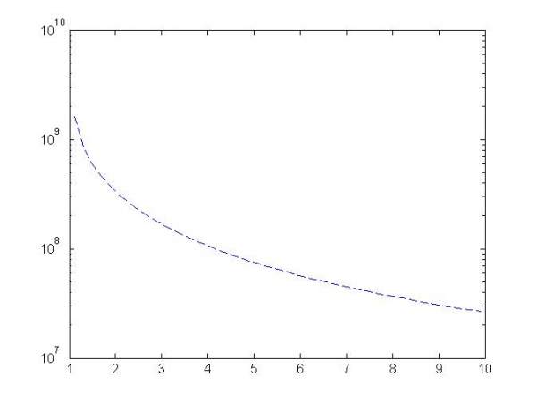 matlab解四次方程的问题,我写的程序如下:要求在w=0.9:0.01:1.1的范围内求x的最大值*R随gamma=1.1:0.5:10的变化,大家能帮忙看一下出什么问题了吗? 非常感谢! clear clc syms x w=0.9:0.01:1.1;%21个 gamma=1.1:0.5:10;%18个 c=3*10^8; wpb=0.2; R=2.3*10^-2; for j=1:18 %gamma v(j)=c*sqrt(1-1/gamma(j)^2); for i=1:21 %w y(i)=1+0.2^2/(1-w(i)^2+2i*0.015*w(i)); %wpb(j)=sqrt((1.602*10^-19)^2*10^9/(9.109*10^-31*8.85*10^-12*gamma(j)^3)); f(i,j)=(y(i)*(w(i)*2*pi*24*10^9)^2/c^2-x^2)*(1-(wpb*2*pi*24*10^9)^2/(((w(i)*2*pi*24*10^9)-x*v(j))^2*y(i)))-2.4048^2/R^2; k=solve(f); %解出来k有四个根, k2=imag(k)*R;%需要k2的第四个根的值 k2=double(k2); %m1(i)=k1(1, ;%m2(i)=k1(2, ;%m3(i)=k1(3, ;%m4(i)=k1(4, ;%n1(i)=k2(1, ;%n2(i)=k2(2, ;%n3(i)=k2(3, ;%n4(i)=k2(4, ; end k3(j)=max(k2); end %d=max(d) semilogy(gamma,k3,'b --') |