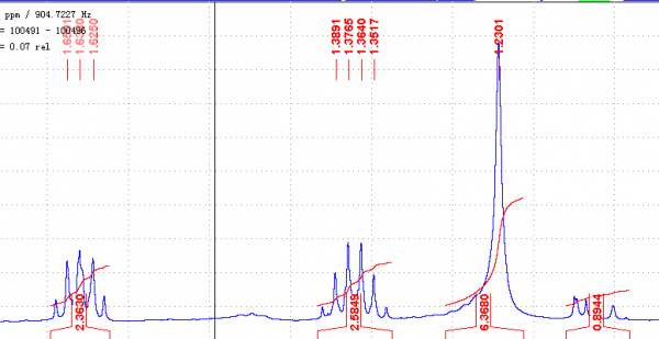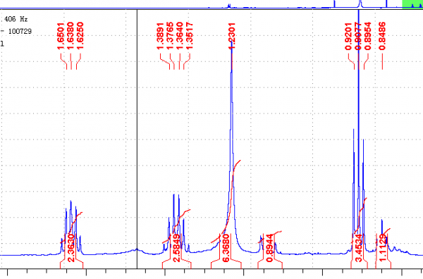 前两张图鉴定出化合物为butyl 1H-imidazole-4-carboxylate,后一张氢谱与这个化合物的氢谱基本相同,只有1.22处的单峰有差别,这个峰是杂峰么,但是积分又很大,请教了。