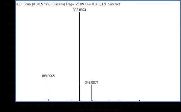 物质为△-2-头孢氨苄,M=347,是头孢氨苄中的一种杂质,我们做了负离子液质,求高手帮忙解一下质谱图,M=189的是什么碎片,谢谢