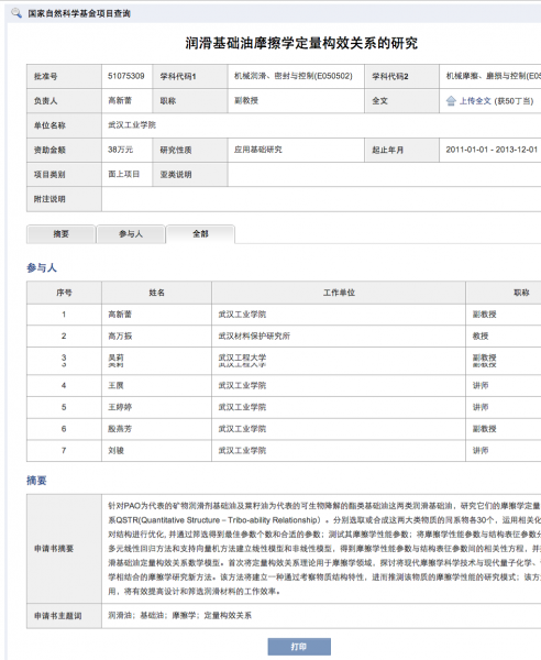 润滑基础油摩擦学定量构效关系的研究 金额:38万 申请时间:2010 学科代码:机械润滑、密封与控制(E050502) 项目批准号:51075309 |