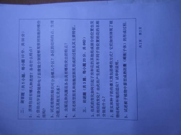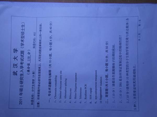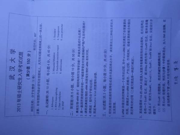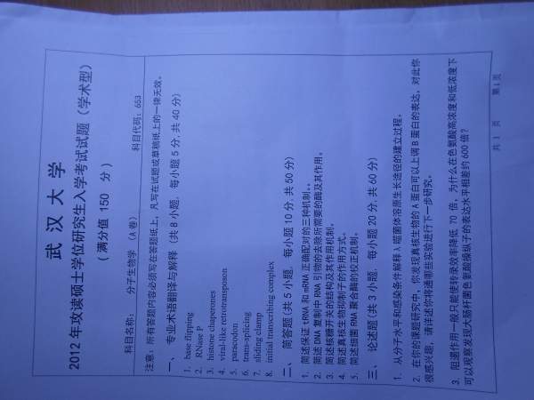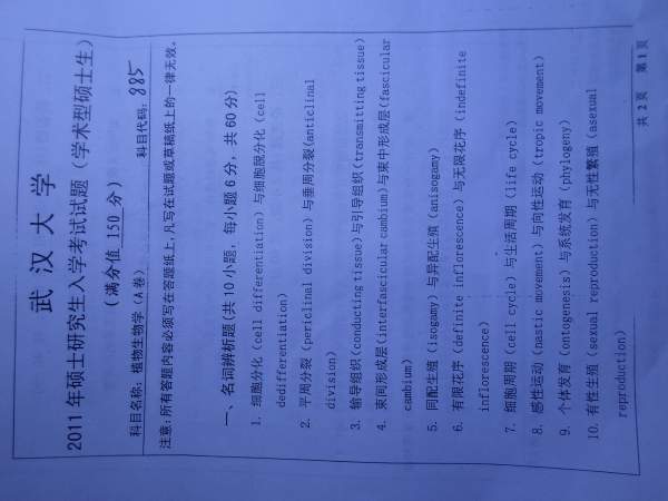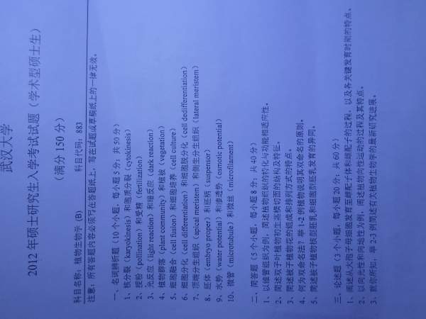 【学历考试】武汉大学 考研真题 植物、分子生物学