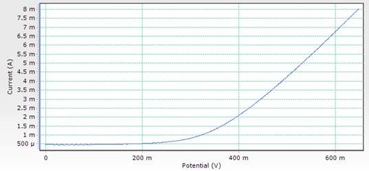 我做过LSV但是直接甲醇燃料电池,但是测的是甲醇渗透 跟你这个很像 到了高电位时出现了一个平台,电流到达极限。