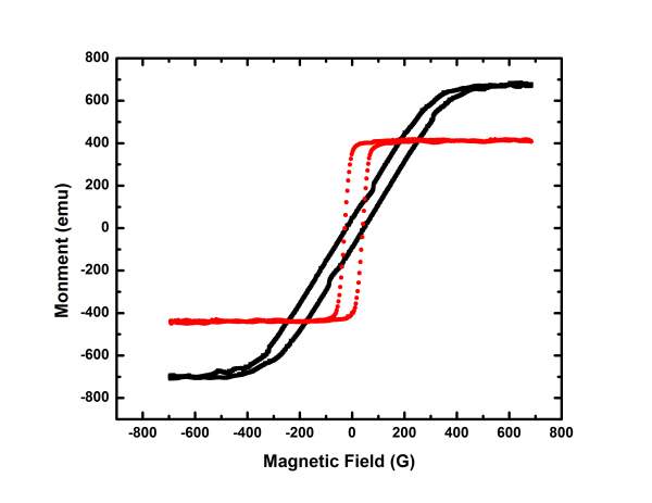 黑色为样品的磁滞回线,红色为用镍标定的磁滞回线。