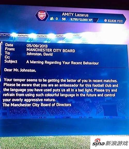 国外玩家因骂人收到《FIFA14》曼城警告信