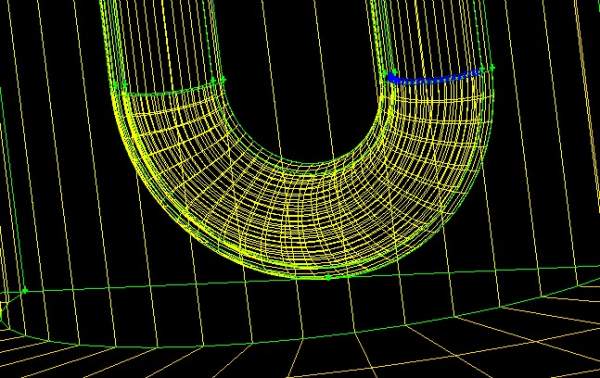 先画一个进口面,然后画好这个面的网格,然后画出来U型线。记住,关键,把这条线上的节点数先设置好。然后在gambit -volume操作里面,选择从面拉伸到体,沿edge(u型线)拉伸,勾上带网格拉伸。ok