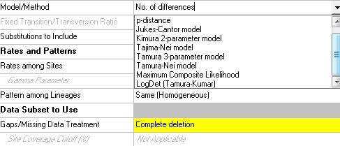 求助 MEGA 5 建树中,各种model/method的适用范围,如Tamura-Nei method,Jukes-Cantor model等;另 Gaps/Missing Data Treatment 该如何选择,如什么时候选complete deletion?(见附件图) 十分感谢! }6MJ~5OUYN2T{XJ00V%RBHP.jpg |