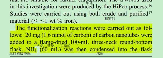 感谢参与,应助指数 +1 tjutjutju: 金币+10, ★★★很有帮助, 不好意思啊,有一段时间没有上论坛了。 非常感谢,不过还有一些问题想要请教一下。我不是学有机的,对这个实验过程不是很了解,能否帮忙具体说一下碱金属诱导卤代烷对碳管的加成,以及你说的重氮盐法的具体实施过程呢?非常感谢。 2014-03-05 17:36:39