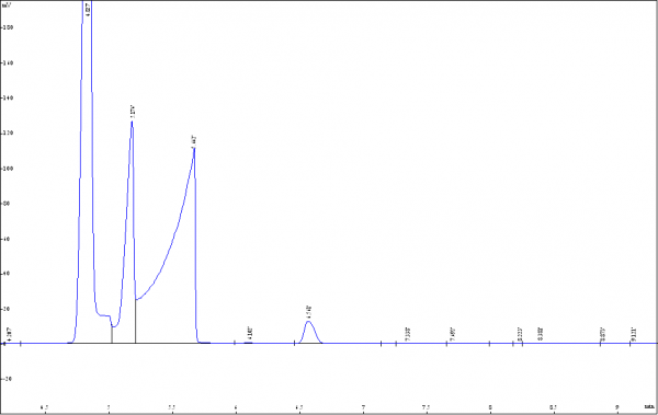 样品是溶媒残留(主要是乙酯)液体中可能还有乙醇、乙酸、硝基甲烷 条件:一、柱温70,50都试过,进样200℃,检测器280℃ 二、柱温40℃,进样200℃,检测器280℃,程序升温到70℃ 三、调整氮气流速,上述条件都试验 上面三种方法打出来的图基本上差不多,后面有个物质分不开,有什么办法能把他们分开吗? 图片1.png |