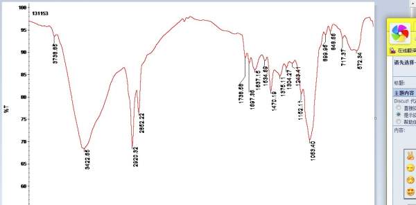 我首先合成了三甲基壳聚糖,然后用EDC络合法把硬脂酸接到三甲基壳聚糖的氨基上,即合成了硬脂酰化三甲基壳聚糖,得出的红外光谱如图所示,能否请红外专家们帮我归属一下各个峰,以确证是硬脂酰基-N,N,N-三甲基壳聚糖 3N(7}Z9[6307T90%5AD78FV.jpg |