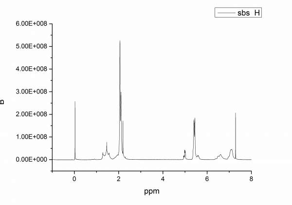 用纯的SBS做的核磁,溶剂是氘代氯仿,谱图如下,结构应该如图sbs 用chemdraw预测峰位...5-6应该是双键上的氢,7.3左右的尖峰不知道是苯环还是残留溶剂,是残留溶剂的话那么6.5-7.2左右的那两个小峰是苯环吗?1-2左右的那些峰chemdraw预测的也不是很准确... 求大神帮忙分析一下 核磁谱图.jpg sbs结构(括号外面聚合度没标出).jpg |