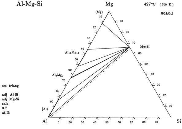 合金牌号为6061(Al-0.8~1.2%Mg-0.4~0.8%Si)和6030(Al-0.45~0.9%Mg-0.2~0.6%Si),生产工艺是半连续铸造制取合金锭,热挤压方法生产型料,在进行热处理和表面处理之后得到最终产品,该合金属于Al—Mg-Si合金 问该合金可能存在哪些相 ~~~~~ 求助求助 ~~ 297.jpg |