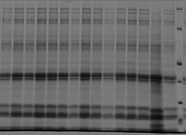 最下面的条带有点弥散,最郁闷的是最下面有一条长长的横线,不知道是什么,貌似还有条带在里面,分不出来,请各位前辈帮我看看,能怎么解决,我都急死了。