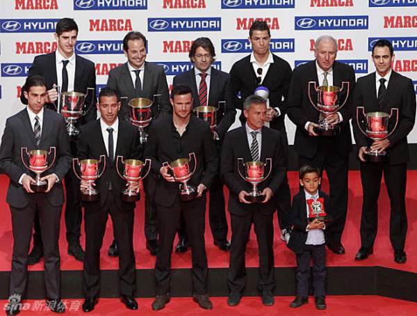 C罗本赛季联赛已经打进了17球,但是由于伤病他缺席了上周皇马欧冠和西甲的比赛,对于获奖,C罗本人也是十分开心:“是的,我现在处在一段好时光,我认为这是我职业生涯的最好开始,不过我觉得我一直处于很好的状态,我看到了强大的皇马,一切都在慢慢提高。我们很好,我想要帮助球队,希望赛季末我们依然出色并拿下冠军。我们强大、坚定,成功的方程式就是工作,训练和比赛保持专注,一直努力工作。他还谈到了自己的伤病:”我没伤了,我很好,我用了几天时间休息,最近一场比赛没打不是因为打不了,下场比赛我会复出。” 当问到本赛季的目标时,C罗表示:“我们要上下一心,皇马要努力拿下欧冠,皇马这样的球队每年都应该争夺欧冠。葡萄牙的世界杯?我们会看看的。” 梅西和比拉诺瓦未能参加颁奖典礼,切尔西租借在马竞的门将库尔图瓦荣膺最佳门将,本赛季加盟曼城的内格雷多荣膺最佳前锋,公平竞赛奖属于5岁的小男孩亚历杭德罗。在今年5月的一场西班牙地区幼年级别比赛中,亚历杭德罗所在球队的教练冲入球场和裁判争论,亚历杭德罗跑到教练和裁判中间将两人分开,化解了争吵。 《马卡报》评出的西甲2012-13赛季各项最佳: 迪斯蒂法诺奖(西甲最佳球员):C罗 米格尔-穆尼奥斯奖(最佳教练):比拉诺瓦 皮齐齐奖(最佳射手):梅西 萨莫拉奖(最佳门将):库尔图瓦 萨拉奖(西班牙本土最佳射手):内格雷多 古鲁塞塔奖(最佳主裁判):贝拉斯科-卡尔瓦略 111.jpg 222.jpg 333.jpg 444.jpg [ 来自小组 休闲体育 ] |
