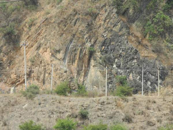 云南野外见到的一个构造剖面,研究半天没能想明白这个是怎么形成的,感兴趣的帮忙思考一下。