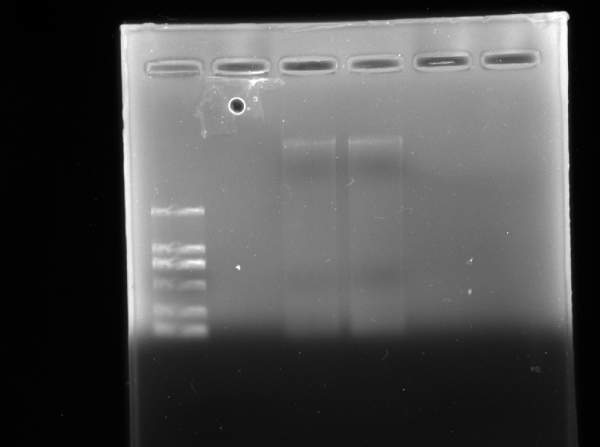 大家好,我这有一张真菌DNA跑胶电泳图,为什么拍出来北京这么亮呢?而且Maker跑出来也好像不太正常哎?向各位大神求助啊 Administrator 2013-12-04 18 小时 46分钟左深右浅,立枯丝核菌DNA电泳图.jpg |
