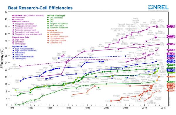 现在太阳能电池最大效率?各色OLED的最新外量子效率?