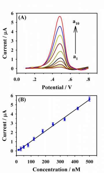 各位大侠,急求检测极限的计算方法,有几种计算方法?比如,如图所示,a为不同浓度被分析物的差分脉冲伏安图,b是浓度校正曲线,线性方程是Ip (μA) =-0.1025 + 0.0113 C (nM),R2 = 0.9954. 问题: