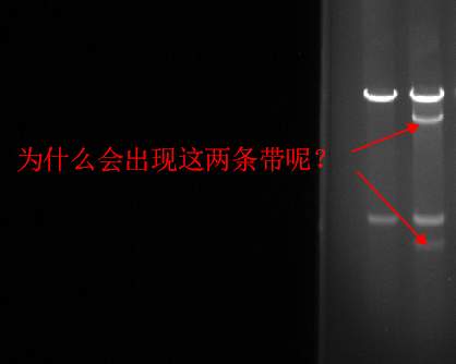 我用同一种质粒转化到BL21 和rosetta菌株里,在分别提取质粒,进行酶切,为什么酶切后电泳,,一个质粒酶切正确,一个质粒出现了四个条带呢 具体看图 @210`6FZ~KQIS7X6W29XCMT.jpg |