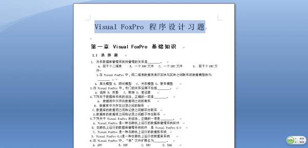 【计算机类】Visual FoxPro 程序设计习题 计算机考试习题