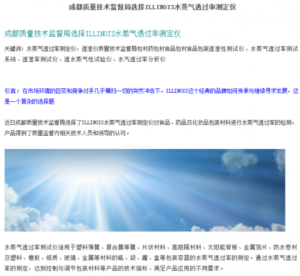 成都质量技术监督局选择了ILLINOIS水蒸气透过率测定仪 - 希仕代仪器贸易 http://www.sysnois.com/productID/datum_detail-15557.html |