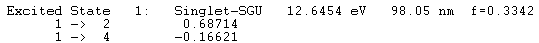 用tddft计算电子光谱,能够显示若干电子激发态电子跃迁所需要的能量(如图),请问那个数值12.6454表示的是电子从基态跃迁到第一激发态所需的能量吗?如何能够得知团簇电子基态的能量呢?