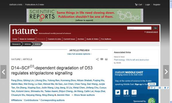 南京农业大学 万建民课题组在Nature杂志发表控制水稻分蘖的新激素信号转导研究成果已有13人参与